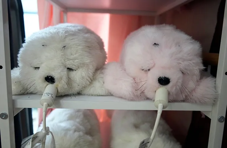 Gli animali (spesso cani) sono stati utilizzati negli ambienti di cura per aiutare i residenti a diventare più socievoli e meno agitati e per migliorare la loro qualità di vita. Ma gli animali richiedono molte cure, mentre un animale domestico robot no. L’esempio più comune di questo tipo di robot sociale è Paro. Piuttosto che un cane, il robot, progettato in Giappone, sembra un cucciolo di foca della Groenlandia. È stata scelta una foca perché sarebbe familiare e avvicinabile, ma non è un animale domestico comune, quindi una persona non noterebbe immediatamente le differenze tra il suo comportamento e quello dell’animale reale. Paro viene generalmente utilizzato per fornire una forma di pet-therapy agli anziani nelle strutture di residenza assistita, offrendo compagnia e incoraggiando l’interazione tra i residenti delle strutture e il personale durante le sessioni di terapia.