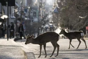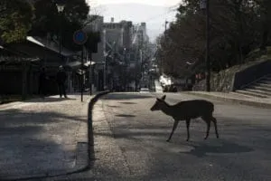 “Meno turisti a Nara=meno persone che danno da mangiare ai cervi nei parchi”, twitta un reporter di Bloomberg insieme a foto di cervi che vagano per le strade urbane di Nara, in Giappone. L’antica città, che è una popolare destinazione turistica, è stata svuotata della vita umana da quando il Giappone ha attivato le misure di contenimento.