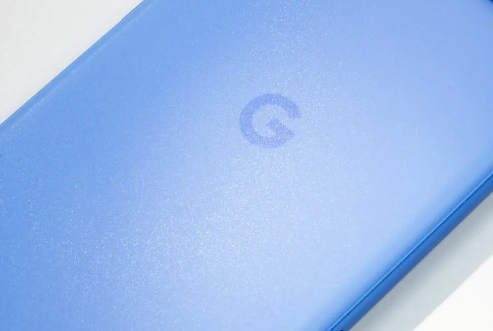 Il retro del Pixel 8a è ancora in plastica, ma non è più liscio come il vetro. Ha una consistenza molto fine che lo fa sembrare vetro smerigliato. La superficie brilla con la giusta illuminazione e ha una sensazione più opaca che la rende un po’ più efficace nel nascondere le impronte digitali. Anche il pannello posteriore sembra essere completamente colorato invece di essere trasparente sopra un foglio colorato.